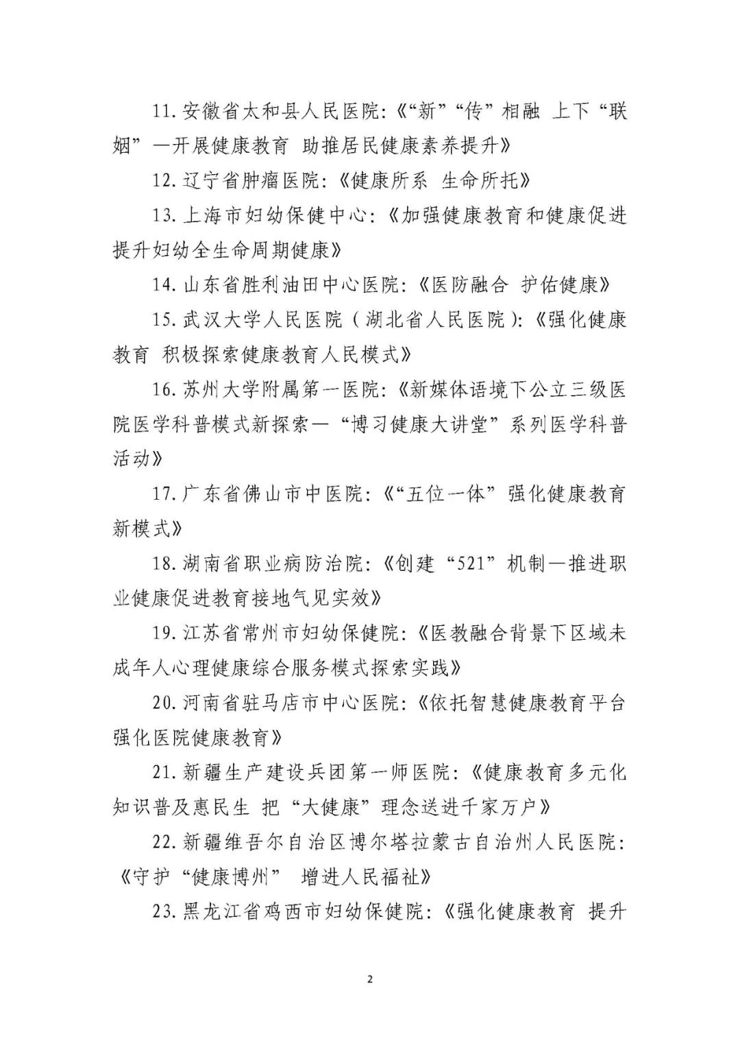 2023年健康促进医院优秀案例名单公布,河北两家医院入选