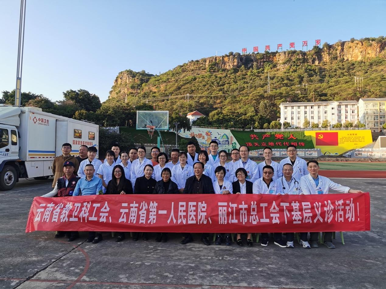 为落实中国工会十八大和省第十三次工代会精神,推动云南省总工会挂州联企帮扶和暖边固防行动走深走实,提升边疆人民群众健康水平,云南省教育卫生科研工会组织云南省第一人民医院医疗专家28人,赴丽江、德宏开展了为期10天的大型义诊巡诊活动。这次义诊巡诊把省内最优质医疗服务送到群众家门口,得到各族群众的高度赞誉。