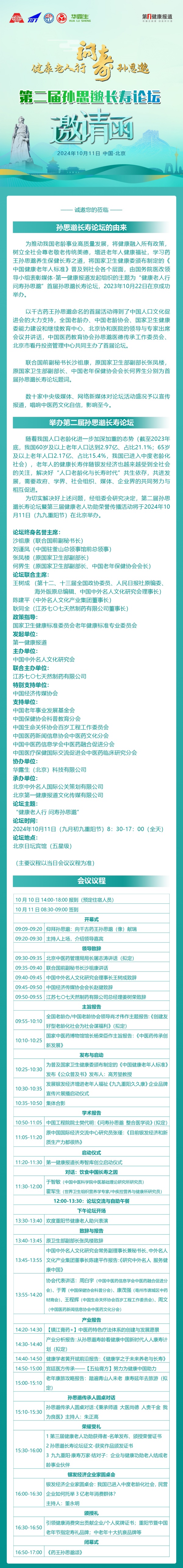 为推动我国老龄事业高质量发展,满足3亿老年人口对健康产品日益增长的需要,促进老年健康消费,孙思邈长寿论坛组委会将在2024年10月11日举办的第二届孙思邈长寿论坛上,为健康养生保健食养等非医疗品牌产品颁授【甲辰年九九重阳节暨中国老年节】指定寿礼证书。有意向的健康养生与保健食养单位可积极参与申报,审核通过的将颁发“九九重阳节暨中国老年节指定寿礼”证书,活动咨询:卫老师,18612508848(微信),信箱:jkppcj@163.com,会议日程附后: