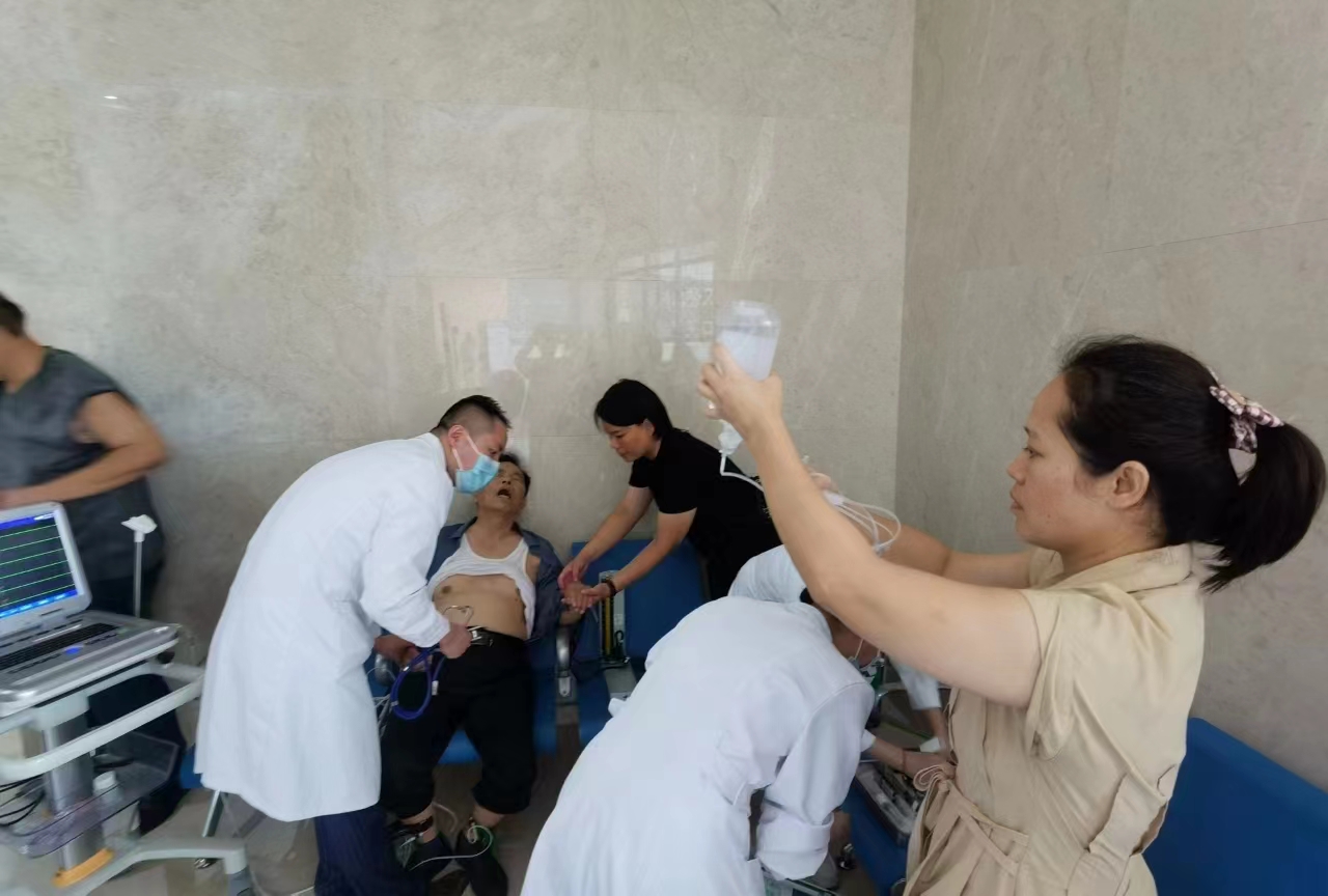 近日,在南阳市口腔医院两相路新院区发生了惊心一幕:一老人在家人的陪同下到口腔医院看牙,结束后,乘坐电梯下楼至一楼门诊大厅,刚出电梯,老人突感不适,大汗淋漓,突然晕倒,呼之不应。紧急时刻,家属呼叫导医护士,护士孙璐立即通知一楼心内科医生李春晓。李医生百米冲刺飞奔现场,查体、询问家属病情,叮嘱护士建立静脉通道,同时对老人进行心电图检查,心电图检查结果提示有陈旧性心肌梗死。询问家属,得知老人有冠心病、高血压、糖尿病史,早晨吃了降糖药,未吃早饭,李医生初步判断老人可能为低血糖引起的昏迷,叮嘱护士静推40毫升高渗糖。1分钟后,老人缓慢苏醒化险为夷,在场的人都松了一口气。