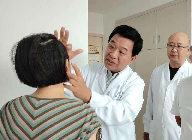 河南省著名面瘫修复专家伍成奇教授对张女士进行了详细检查。检查中,伍教授发现张女士右侧额纹消失、眼睑闭合不全、右侧鼻唇沟消失、口角歪斜,不能完成怂额、提眉、鼓腮等动作,诊断为右侧陈旧性完全面瘫。