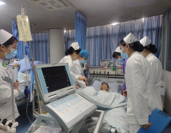 “通常情况下,常见的室速需要降低心室率,而该类型的室速刚好与之相反,需要提升心室率才能够控制室速发作”,周骐带领熊建文主治医师根据患者病情的复杂性,对尖端性扭住心律失常的治疗进行深入解剖后完善治疗方案,应用大剂量硫酸镁静脉注射,异丙肾静脉注射,抗心律失常治疗的同时纠正电解质紊乱。由于病情罕见,在周骐主任团队努力探讨和研究过程中,熊建文医生每天耐心地与患者家属汇报病情,及时沟通、解释治疗方案和病情,正确的调整治疗方案,吴小平护士长带领护理团队参与病情研究会并针对性开展业务学习,三餐定时喂饭、喂药、擦身,细致的做好每一次护理,时刻关注着患者每一分一秒的心跳。