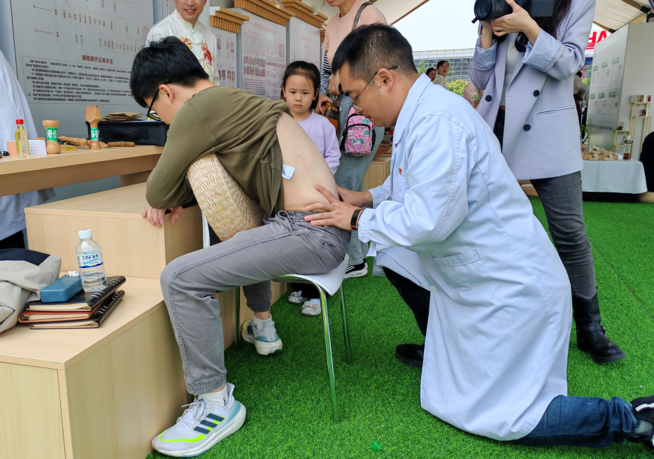 “听说有中医在这,特地来体验一下四川非遗正骨的魅力!”“在哪里可以被‘拿捏’一下?”在活动现场,绵阳市骨科医院的展位前人头攒动,不少厦门市民和四川老乡驻足停留。“彭氏骨伤科流派”传承人税晓平博士为大家讲解了流派作为绵阳市非物质文化遗产代表性项目的发展简史与传承创新情况,逐一介绍了其特色治疗器具和治疗手法,还为感兴趣、有需求的厦门市民开展了正骨和理筋手法治疗,就连厦门广电集团的著名主持人也在体验后表示“力道刚好,做完很舒服!”