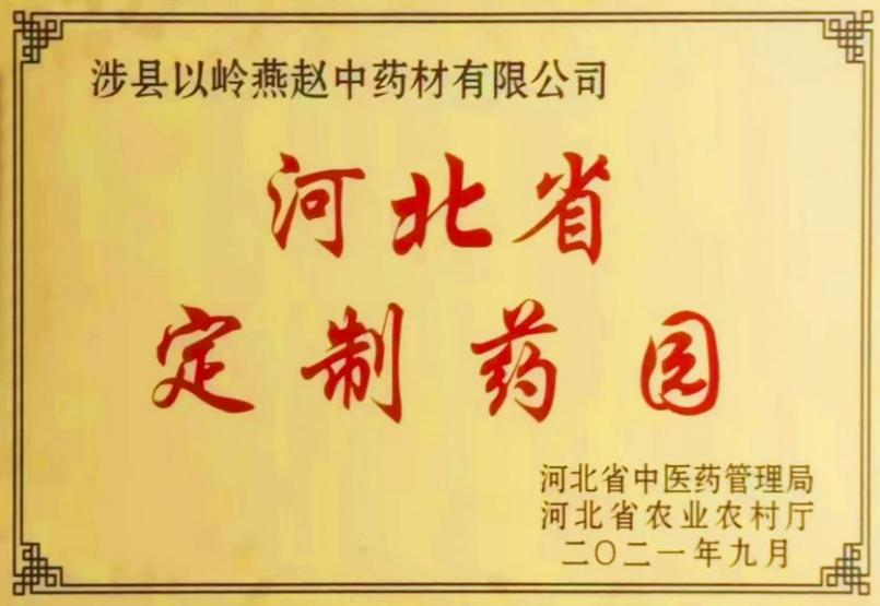 授予涉县以岭燕赵中药材有限公司“河北省定制药园”
