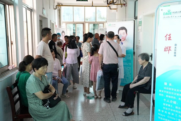 在大冶市人民医院1号楼3楼骨科门诊义诊现场,武汉同济医院骨科副主任医师徐飞等五名骨科专家与大冶市人民医院骨科专家联合为当地群众进行义诊。专家们态度和蔼、用通俗易懂的语言为300多慕名而来的群众解答疑问,他们耐心细致地问诊,让当地群众在家门口就享受到同济医院专家的优质服务,群众对专家们的服务都赞不绝口。人才技术是第一生产力,是学科、专业不断发展的生命之源。大冶市人民医院党委书记许清表示,通过骨科共建模式,在武汉同济医院骨科雄厚技术实力的帮带下,为大冶市人民医院培养了业务技术骨干,大大地提升了医院整体医疗水平助推了医院高质量发展。