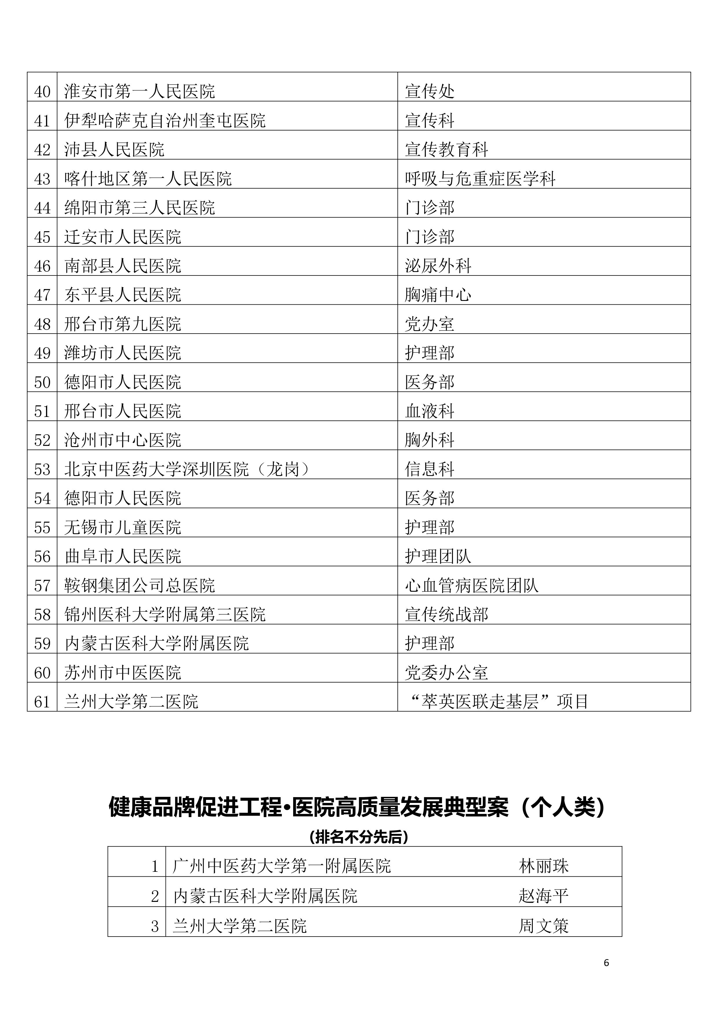 健康品牌促进工程·医院高质量发展典型案例推选活动入围名单公布