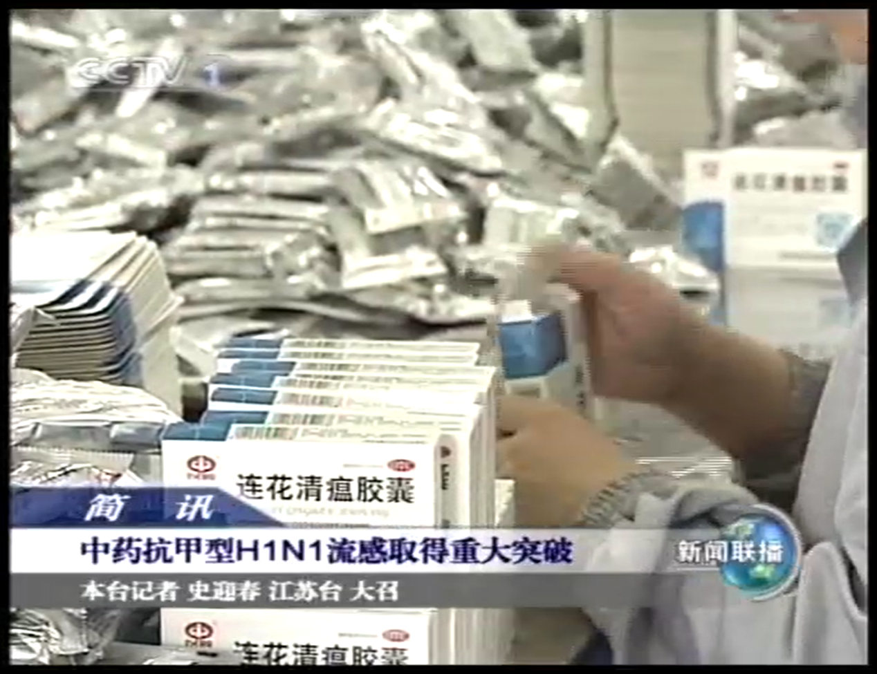 2009年CCTV新闻联播专题报道“中药抗甲型H1N1流感取得重大突破”。