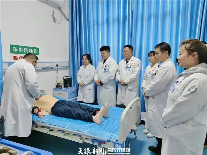 杨昌政不只是来看病的,更是来“扎根”的。从此乡镇卫生院来了大医生,作为帮扶组长,选派组员定期帮扶,他则每周一次柔性帮扶,每月一场专题培训,手把手教急救流程,一个个考核操作技能。“心肺复苏、电除颤,必须人人过关。”杨昌政说。他结合自己重症医学科的专长,围绕胸痛、创伤、休克等危重症设计课程,既讲理论,又教“实战法”。