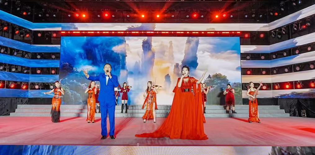 第一篇 章“国医千年”回溯中医药护佑中华民族繁衍发展的辉煌历史,歌舞《开开心心一百岁》由胡月演唱、东方尚美舞蹈团伴舞,生动传递中医养生理念;歌与乐《佛手花》由斯兰演唱,郑文萍、詹宁、樊璟助演,深刻诠释自然与生命的和谐共鸣;歌伴舞《百草仁心》由李晓亮演唱、济南职业学院伴舞,尽显医者仁心的济世情怀;脱口秀《东西南北贺新春》由赵帅、石承主、甘久平、孙萍萍、路博丞表演,以诙谐形式传递新春祝福;主持人秦玉杰与AI机器人“大头”开展互动主持,展现科技与中医文化的创新融合;著名表演艺术家张光北、陈炜、张秋歌、杜宁林带来诗朗诵《健康之道》,深度解读中医健康理念,现场题写马年春联送上新春祝福;器乐合奏《一马当先》由水晶灵乐园表演,契合新春吉兆,尽显中医药事业蓬勃向上的精神风貌。其中,《健康中国》由于乃久、沈凌云演唱,水晶灵乐园、沈阳“詹宁琴之星爱乐弦乐团”联合演奏,作为开篇合唱引爆全场。