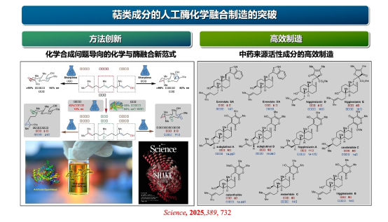 法尼醇是合成萜类天然产物的重要原料,但其分子中部C6–C7双键因位阻大且缺乏活化基团,长期无法实现高精度的选择性环氧化。海军军医大学张卫东、王金鑫团队与上海交通大学李健团队,通过定向进化改造P450BM3,获得可高效选择性催化法尼醇中部烯烃环氧化的人工酶EPO6,实现化学生物协同的多种中药来源萜类功效成分关键氧化反应的精准控制,大幅缩短合成路径,为抗肿瘤活性天然产物的发现和靶标机制研究提供了重要基础。研究成果2025年发表在Science。该进展推动了基于化学生物学的天然产物合成范式的转变,引领进入需求精准设计与优化理想生物催化剂的新阶段。