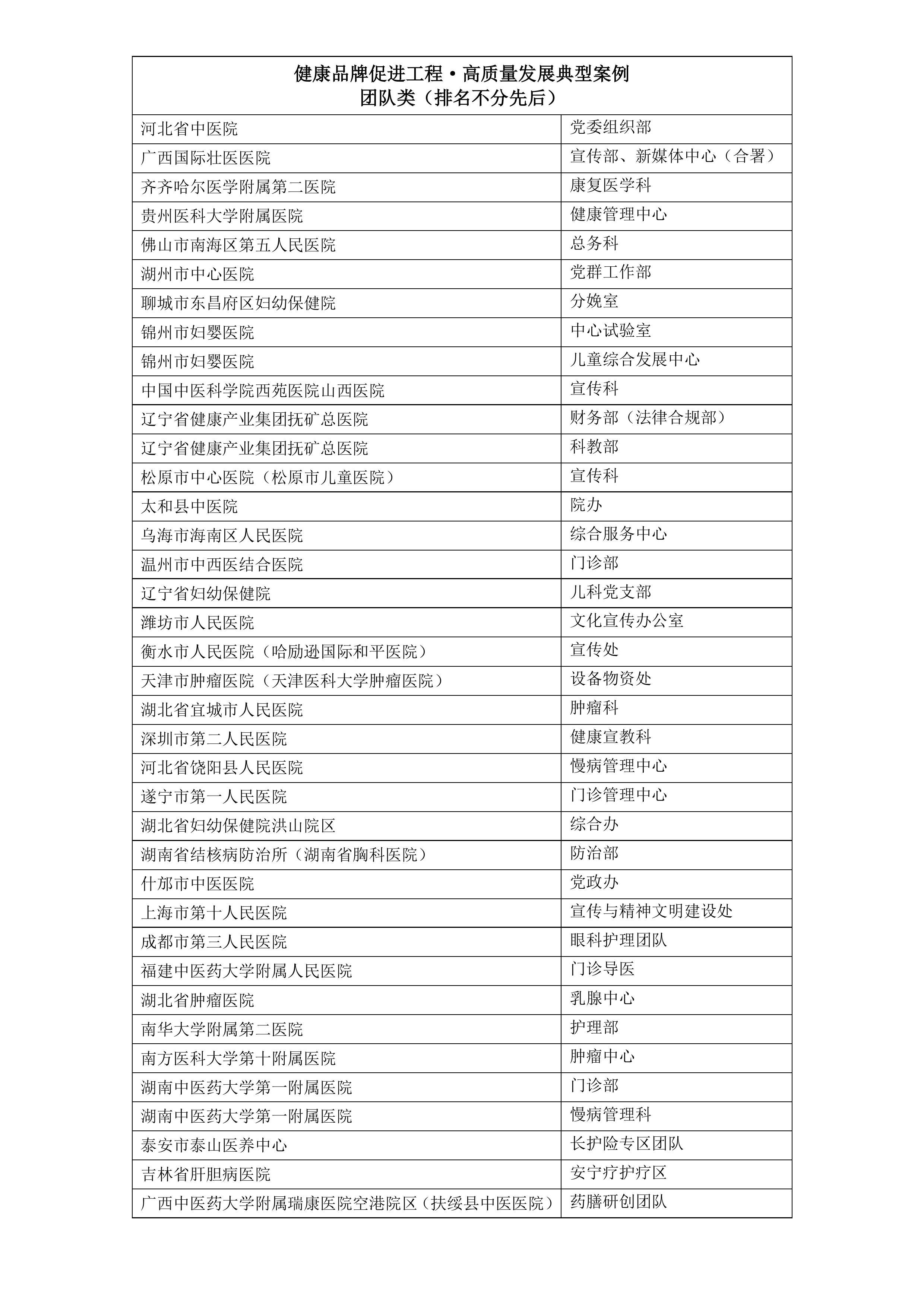 第三批高质量发展典型案例与健康科普作品推选活动入围名单