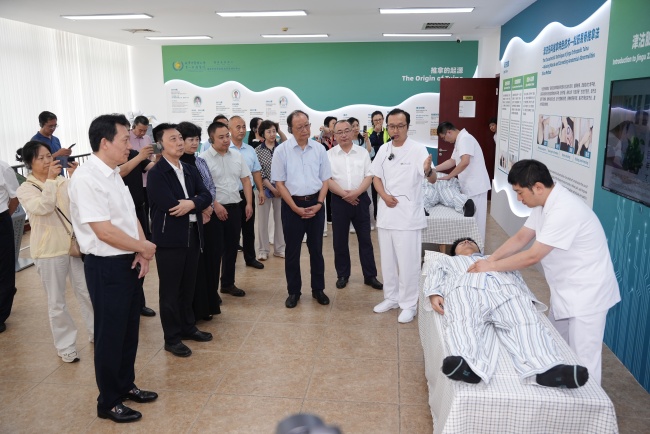 三甲医院示范:9月12日下午,中华中医药学会专家咨询委员会主任王国强和中国健康促进基金会创会理事白书忠长带领来自全国各地的治未病专家一行20余人,参观了天津中医药大学第一附属医院。通过观看中医药文化展厅和医院宣传片,观摩学习国医堂、国药堂、学博书院展厅、治未病中心,交流学习了天津中医药大学第一附属医院治未病工作成效和先进经验。
