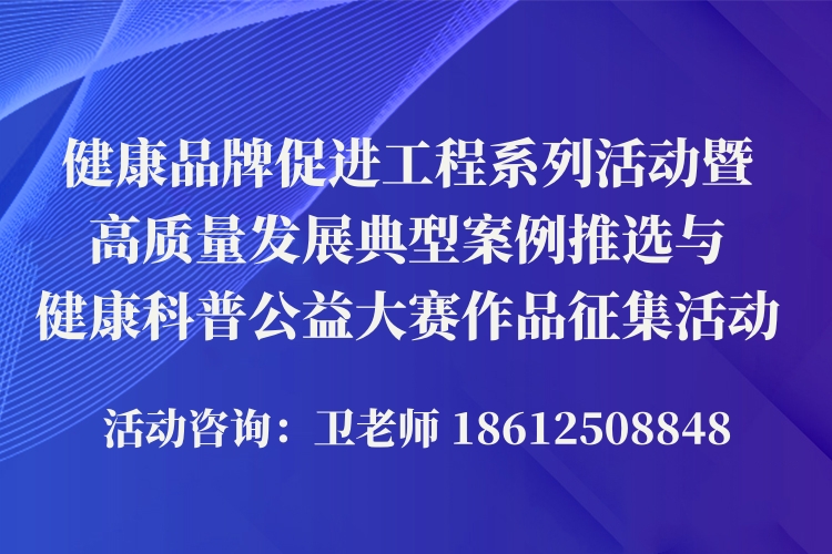 为全面贯彻党的二十大精神,落实《关于推动公立医院高质量发展的意见》《关于加强公立医院党的建设工作的意见》《关于进一步加强新时代卫生健康文化建设的意见》等文件精神,推动卫生健康事业高质量发展,增加优质健康科普作品供给,挖掘典型经验,展现发展成效,弘扬先进典型和经验,助推医院高质量发展,由中国卫生健康网发起,中国网、新华网、央视网、环球网、光明网、健康导报、今日头条、百家号、一点资讯等主流媒体宣发平台,联合健康品牌促进工程组委会与众多卫生健康领域优秀单位开展健康品牌促进工程·高质量发展典型案例与健康科普作品推选活动(下称活动)。