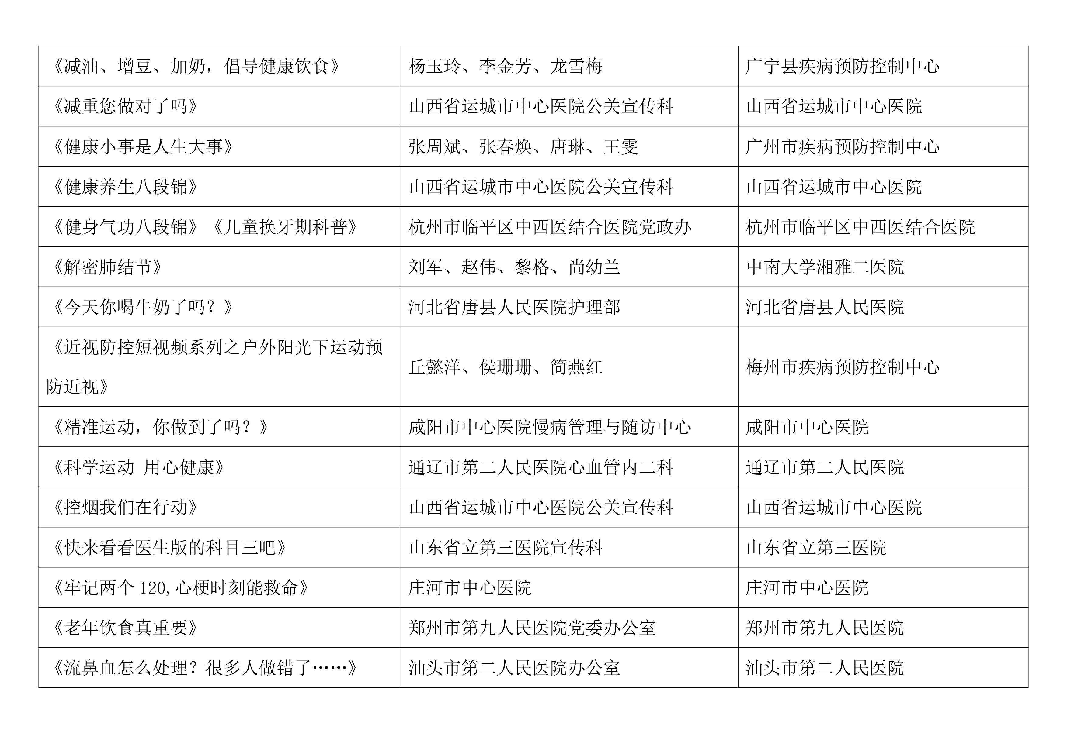 活动开展以来得到了众多卫生健康单位的大力支持,申报亮点案例非常踊跃,为阶段性总结表扬典型案例与优秀科普作品,定于2024年9月11-13日在2024山东国际大健康产业博览会暨期间召开卫生健康事业高质量发展大会暨高质量发展与健康科普工作经验交流会。会议作为博览会重要论坛之一将为卫生健康高质量发展、健康科普工作及各医院之间搭建相互交流探讨平台,会上对获选优秀单位、团队、个人及相关作品颁发荣誉证书表扬。经审核,现将第二批符合要求的高质量发展案例单位、团队、个人及健康科普作品名单公布如下(排名不分先后):