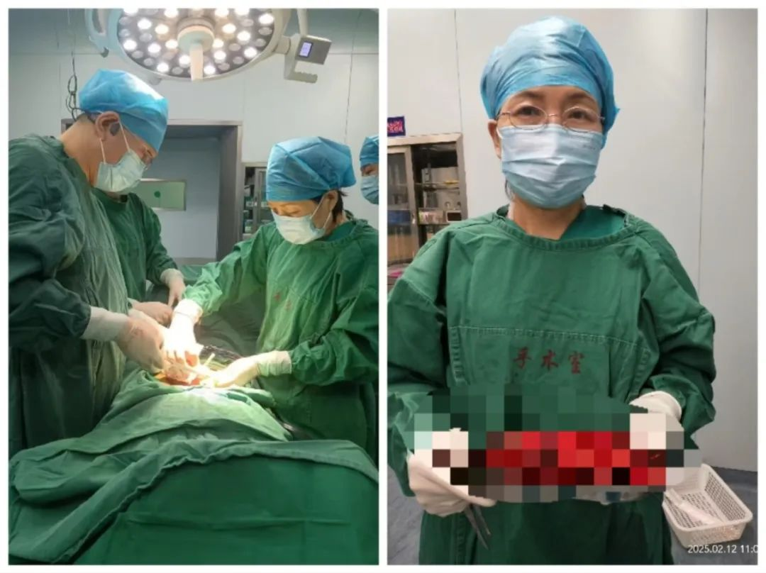 叶玲霞主任为一盆腔多发肌瘤(最大径线10厘米)患者手术切除瘤体。