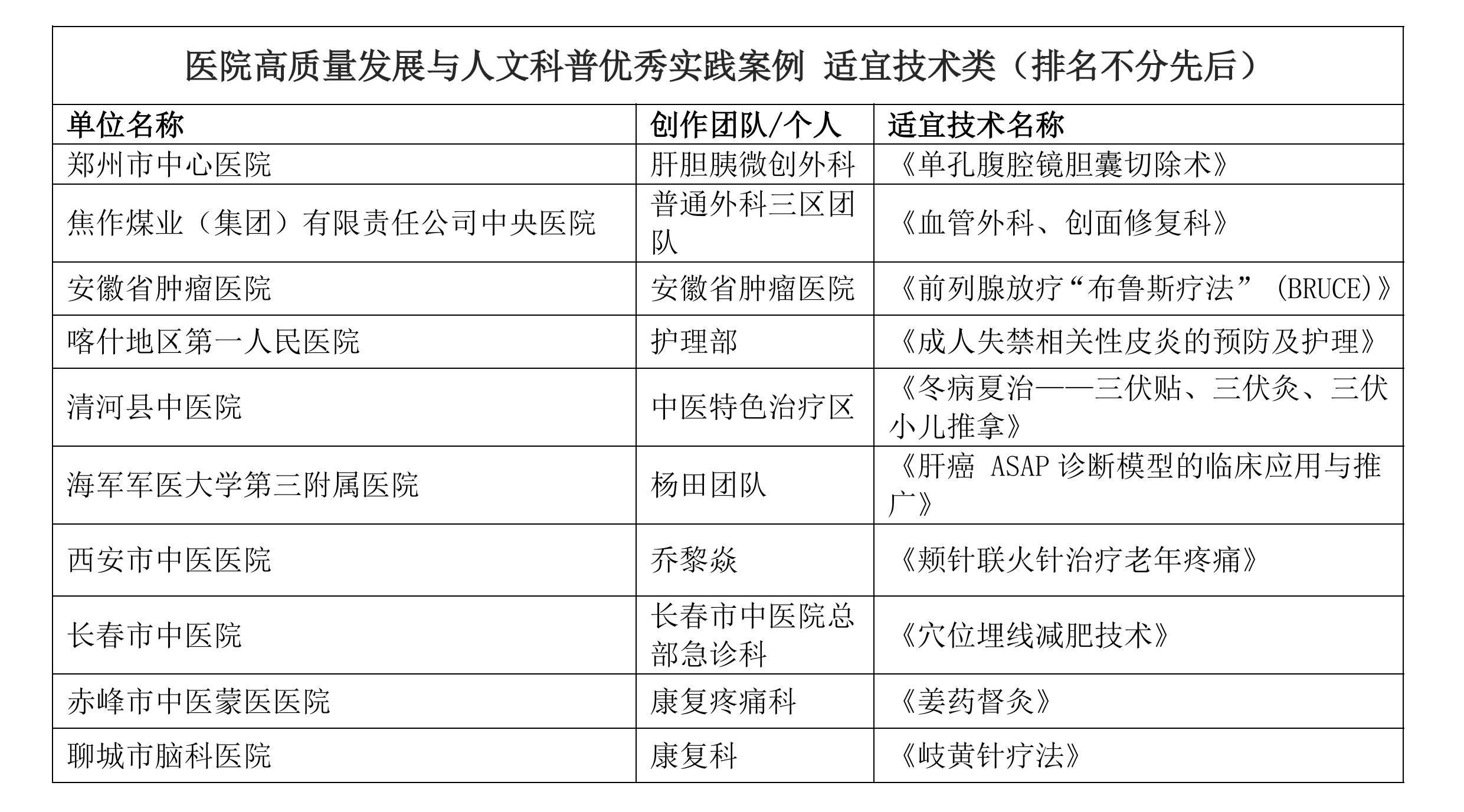 “健康中国·榜样力量”系列推选暨医院高质量发展与人文科普优秀实践案例首批入围名单[ 2025-11-5] 作者:中国卫生健康网 金婵 字号:() () 阅读量:1037297