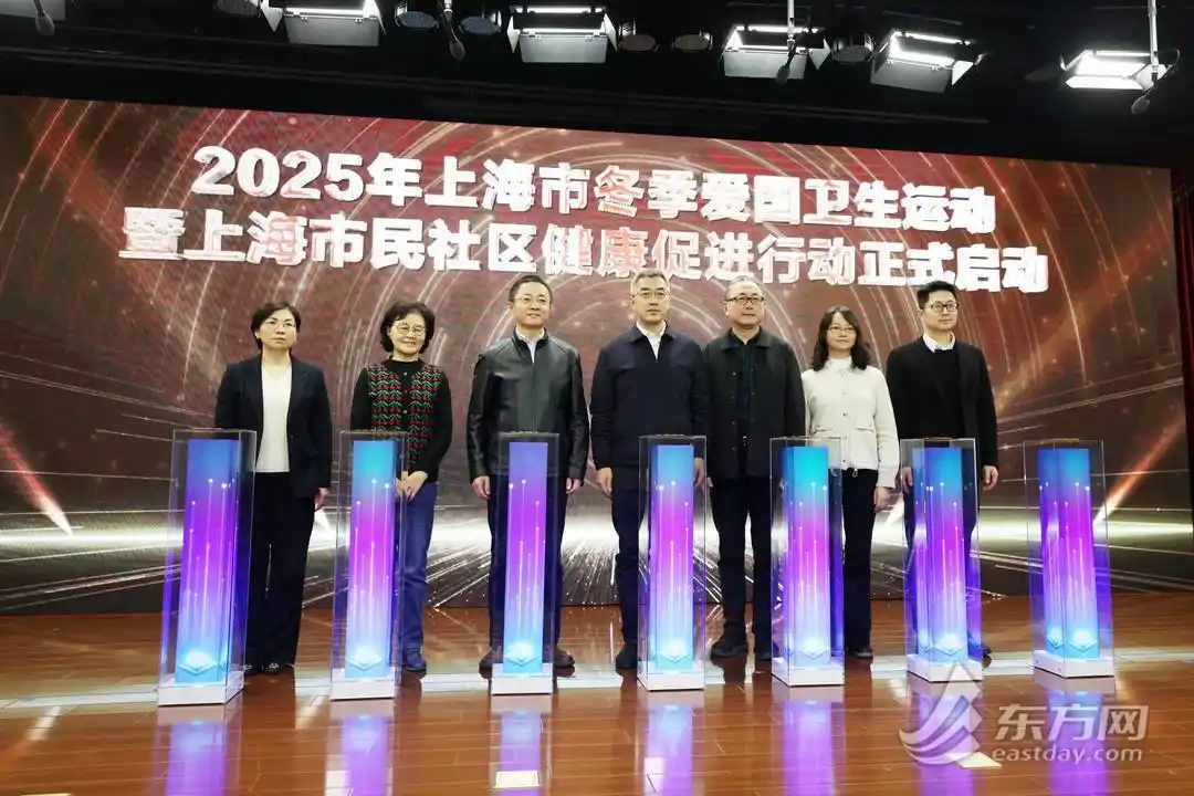 最后,市卫健委副主任、市爱卫办主任陆韬宏,上海报业集团副总经理,东方网党委书记、董事长李翔,市爱卫办副主任、市卫健委健康促进处处长王彤,市健康促进协会会长李忠阳,市健康促进中心主任高晶蓉,静安区卫生健康工作党委书记陈敏,静安区石门二路街道党工委书记李晟晖,共同启动2025年上海市冬季爱国卫生运动暨上海市民社区健康促进行动。
