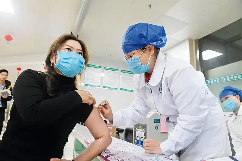 在广西南宁市青秀区长虹社区卫生服务中心,医务人员在为市民接种流感疫苗