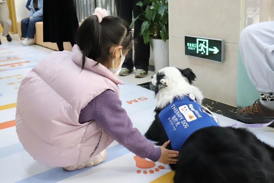 活动的开场,是专业而务实的专家讲座。围绕孤独症儿童的早期识别与家庭干预策略,区精神卫生中心杜昊主任为家长夯实科学康复的知识,树立信心。而随后登场的“特别治疗师”——来自吴起宠物工作室的治疗犬,则将活动推向了高潮。这些经过严格训练和筛选的萌宠,在治疗师的引导下,安静地陪伴在孩子们身边。一些平日对外界反应淡漠的孩子,主动伸出小手,轻轻抚摸狗狗的毛发,甚至尝试与它们对话。