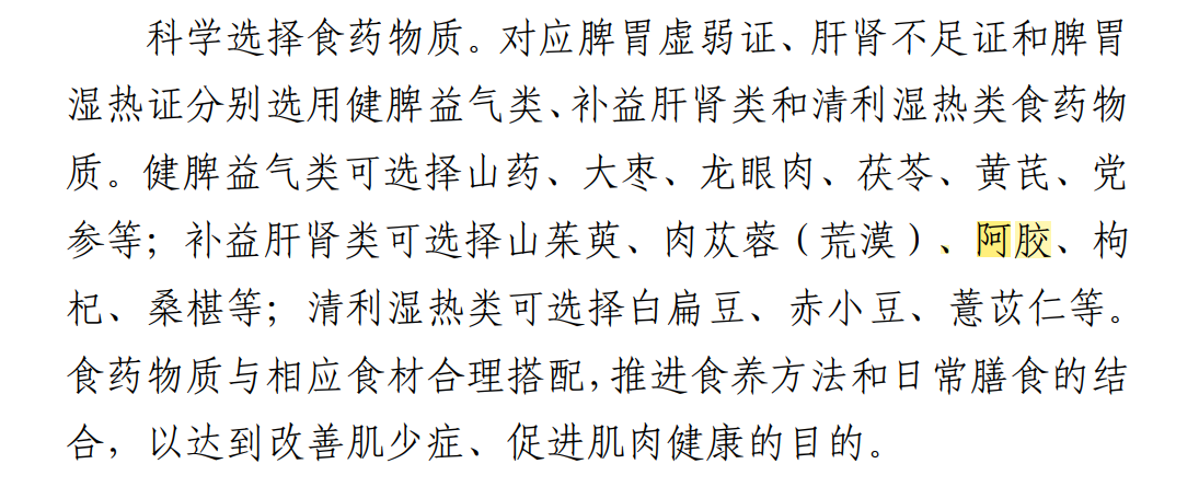 4月23日,国家卫生健康委正式发布成人肌少症等三大食养指南,直面人口老龄化健康痛点和中老年肌肉衰老防治需求。本次权威政策的落地标志着我国全民健康食养干预迈入系统化、规范化新阶段。其中《成人肌少症食养指南》为历史首次发布,为防控老龄化肌少症问题、科学开展营养干预提供了重要依据。 肌少症,是一种主要与年龄相关且受不良生活方式和疾病影响,导致的进行性骨骼肌量减少、肌肉力量下降和或肌肉功能减退的综合征,起病隐匿且渐行加重,会显著增加多种不良临床结局的发生风险,包括老年人跌倒、衰弱和住院等,严重损害老年人的生活质量和身体健康。指南结合我国传统中医的理念和调养方案,提出肌少症人群食养基本原则和方案,提供了常规食物及食药物质的选择推荐。 “阿胶”是指南中推荐的食药物质之一。根据《中国药典》记载,阿胶的功能主治为“补血滋阴,润燥,止血。用于血虚萎黄,眩晕心悸,肌痿无力,心烦不眠等”,是《中国药典》所收载的药材中,功能主治项下唯一明确记载有“肌痿无力”症表述的中药材,奠定了阿胶在肌肉健康领域的独特价值。 截图来源:成人肌少症食养指南(2026 年版) 东阿阿胶与中国海洋大学青岛海洋生物医药研究院(以下简称海药院)管华诗院士科研团队联合开展的最新研究成果进一步证实了阿胶对肌少症的显著改善作用。该项研究以双方联合成立的胶类药物联合创新中心为技术平台,由海药院杜冠华院长具体指导,赵丽丽课题组设计实施。 研究发现,阿胶干预不仅可改善肌少症模型动物肌纤维萎缩状态,增加腓肠肌与比目鱼肌质量,还能有效降低氧化应激,提高肌肉组织中的ATP、NADPH和富马酸的含量。蛋白质组学和非靶向代谢组学整合分析表明,阿胶主要通过调节AKT/mTOR/Foxo3a信号通路和AMP通路来实现以上作用,这两条通路对蛋白质合成和肌肉功能增强至关重要,首次深入揭示了阿胶在肌少症防治中的潜在价值与分子机制,相关研究成果已在国际权威学术期刊《Journal of Ethnopharmacology》上发表。 引自Journal of ethnopharmacology vol. 356 (2026): 120819 该项突破性研究成果的取得得益于东阿阿胶始终以科技创新为核心驱动力,以国家胶类中药工程技术研究中心和山东省胶类药物研究与开发重点实验室为依托,坚定推进“一中心三高地+N联合”研发体系建设,积极落地两大院士工作站,与十余位院士、国医大师及二十余所顶尖高校及科研院所深化合作,致力于用现代科学语言阐释传统中药疗效,引领产业创新发展。 此外,国家卫生健康委本批发布的3项指南中,阿胶同时收录于《成人肌少症食养指南(2026 年版)》、《成人脑卒中食养指南(2026 年版)》2项指南,肉苁蓉(荒漠)同时收录于《成人骨质疏松症食养指南(2026 年版)》、《成人肌少症食养指南(2026 年版)》2项指南,充分表明常见及重大慢性疾病是可防可控的,且食药物质的早期调理干预极为重要。 “阿胶”及“肉苁蓉”此次纳入国家级食养指南指导文件,标志着东阿阿胶布局的两大滋补中药品类在慢病防控、机体抗衰领域的健康价值,对国民健康干预具有重大意义。未来,公司将进一步加强产学研协同创新和科学循证研究,积极推动阿胶等滋补中药纳入更多国家级食养健康指南与行业推荐目录,开发特色产品,助力国民健康水平提升,赋予阿胶产业更强生命力与更广阔发展空间。(采集:骆诗妍、卢秋月、马昕安 整理:金婵 来源:新华网)